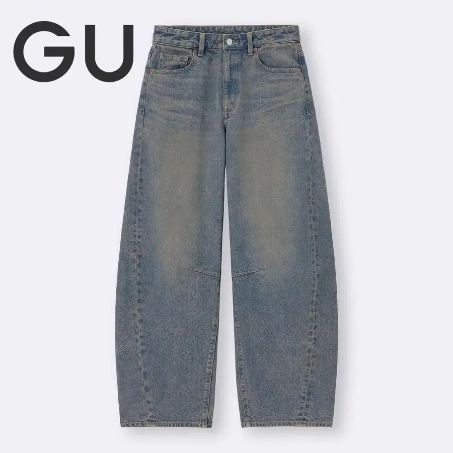 [ GU/지유 ] 배럴 레그 진 블루 M