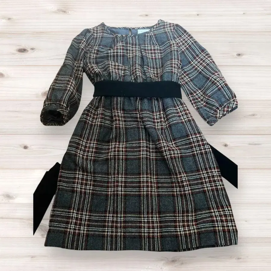 [ 새상품급 ] 그레이 체크 원피스 사이즈 38 울 75% 블랙 리본