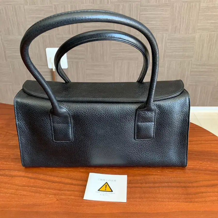 카즈 이토 천연 가죽 가로형 핸드백 블랙