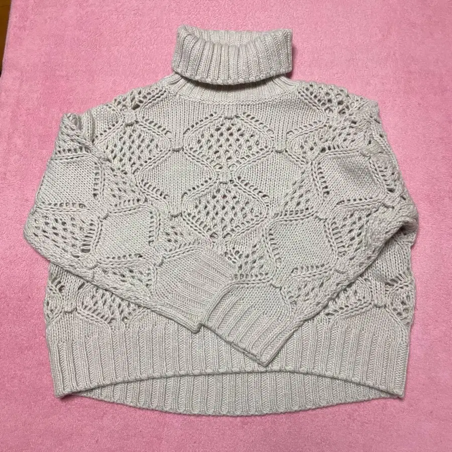 BLUE FRONCE/시스루 짜임 터틀넥 스웨터 베이지