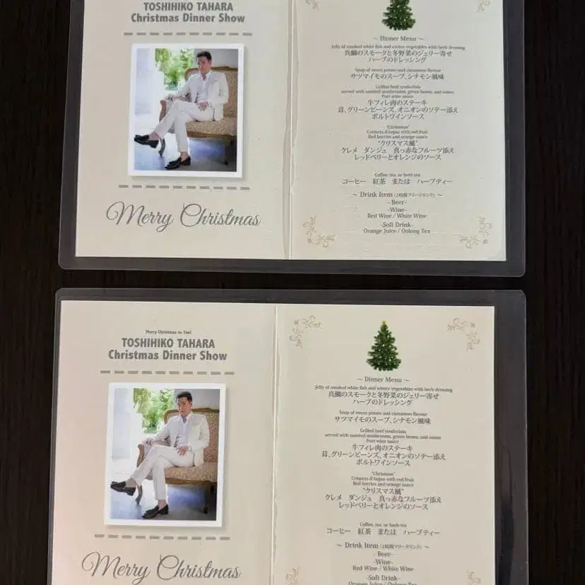 타하라 토시히코 크리스마스 디너쇼 2015 디너 카드 2장