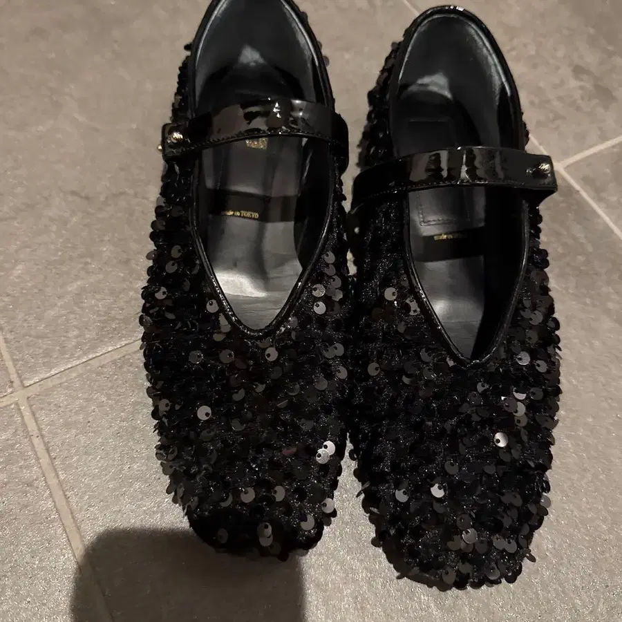 HENRI EN VARGO 블랙 스팽글 플랫슈즈 36