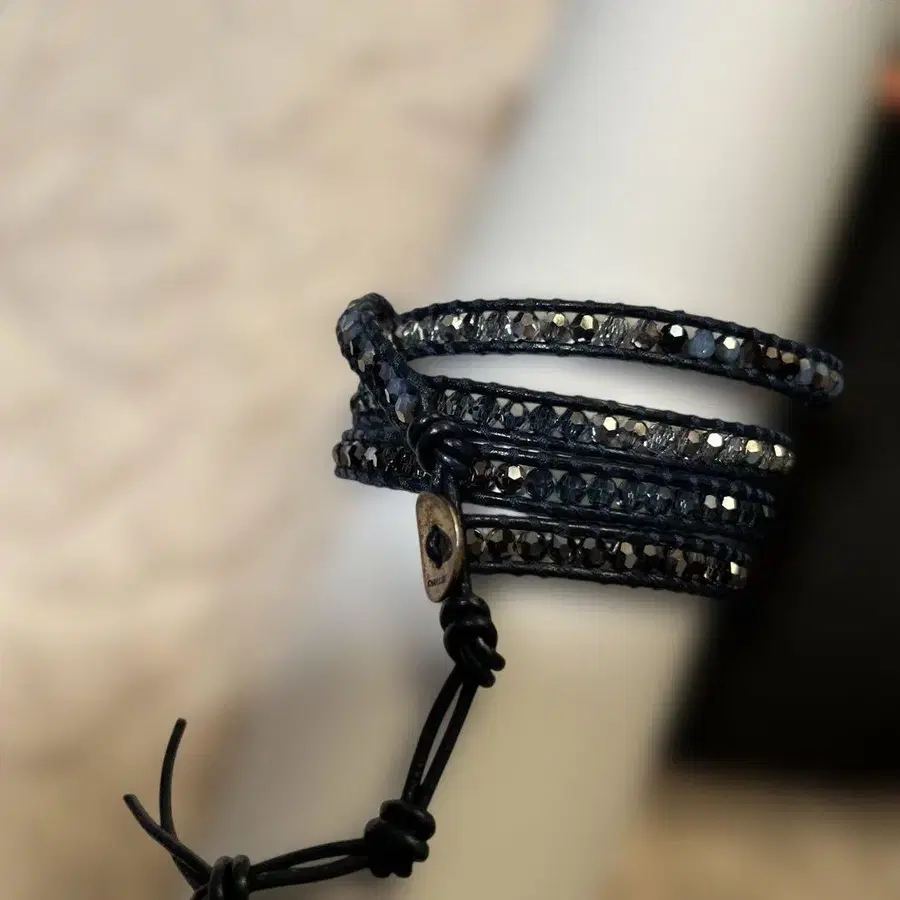 CHAN LUU 네이비 가죽 랩 팔찌