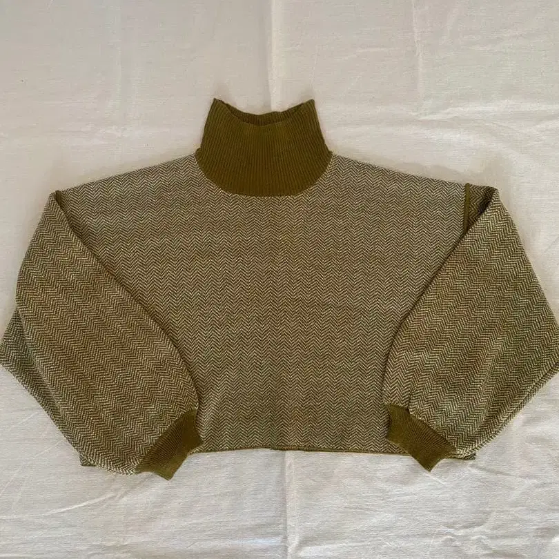 어반 리서치 헤링본 하이넥 니트 올리브 그린