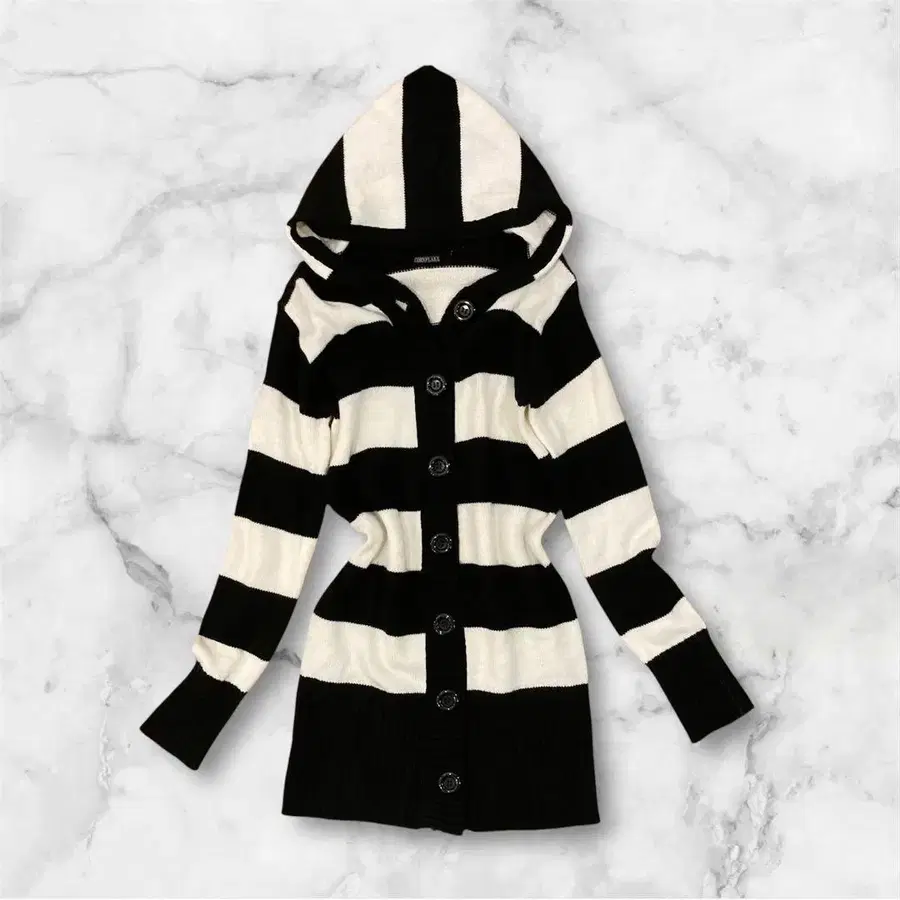헤이세이 갸루 y2k 굵은 보더 롱 니트 가디건 다크 코어 버튼