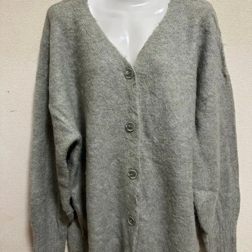 그레이 V넥 가디건 5버튼 오버 사이즈