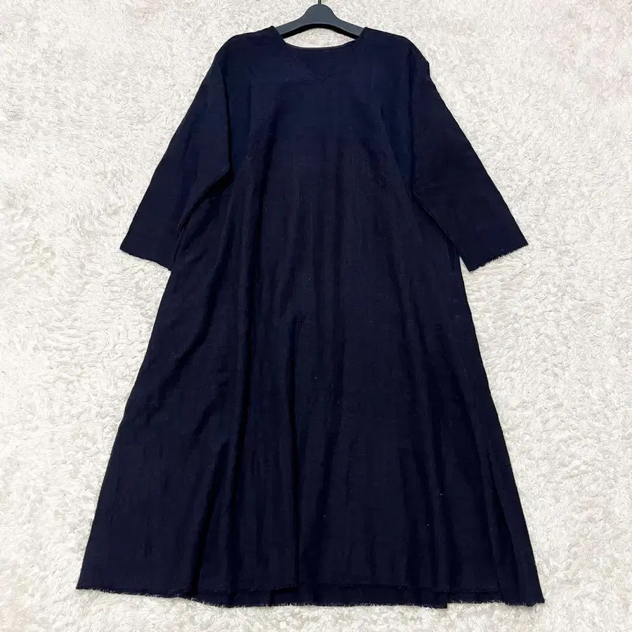 바바구리 롱 원피스 루즈핏 울 실크 네이비
