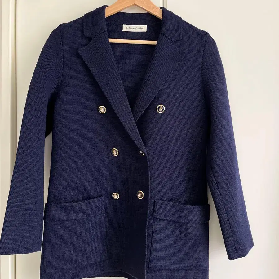 Ladies New yorker 네이비 니트 더블 자켓 골드 버튼 일본제
