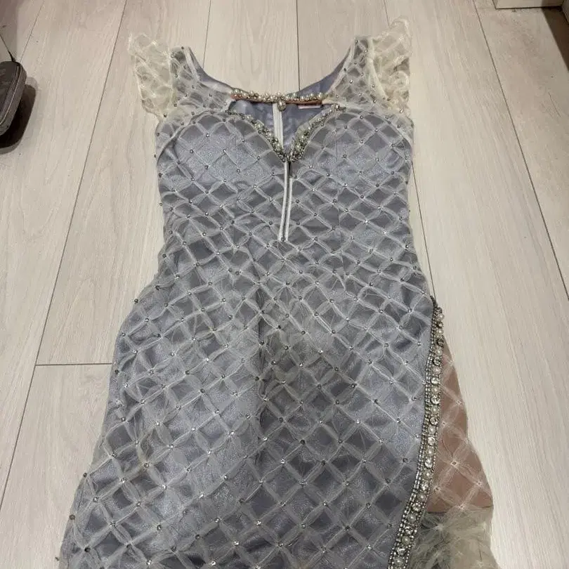 ROBERT FLEURS 그레이 망사 무늬 드레스