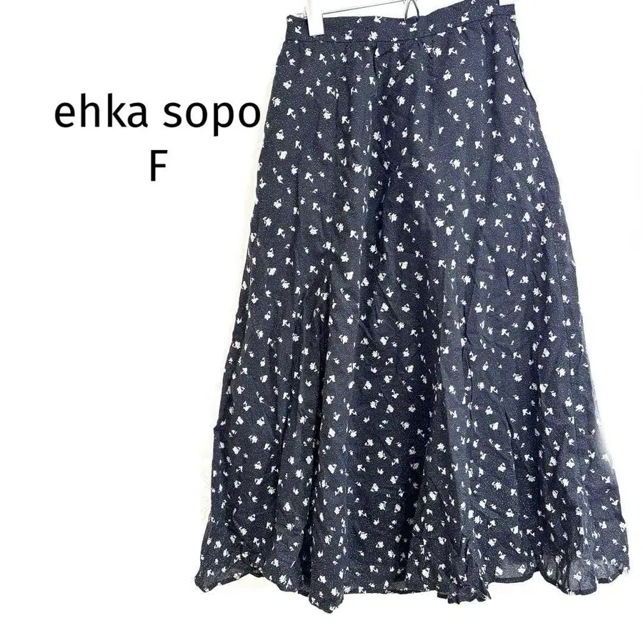 에카 소포 롱 스커트 꽃무늬 플레어 안감 부착 뒷부분 밴딩 성숙/러블리