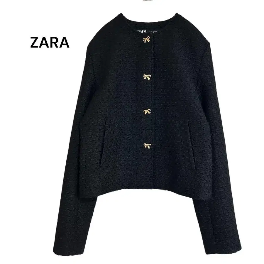 ZARA 노카라 자켓 블랙 XS 트위드풍 숏 기장
