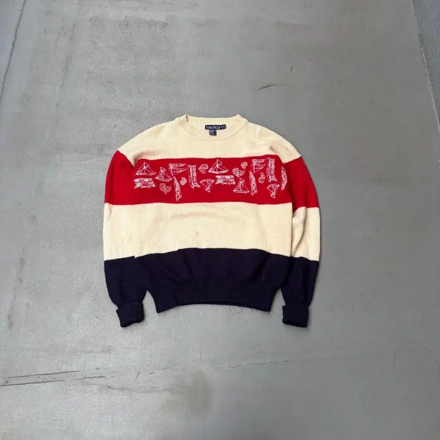 90s Nautica 보더 트리코 울 니트 스웨터 자수