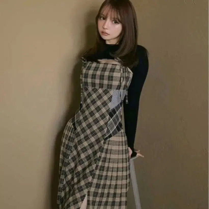 [정품] Nadia 체크 롱 드레스 베이지