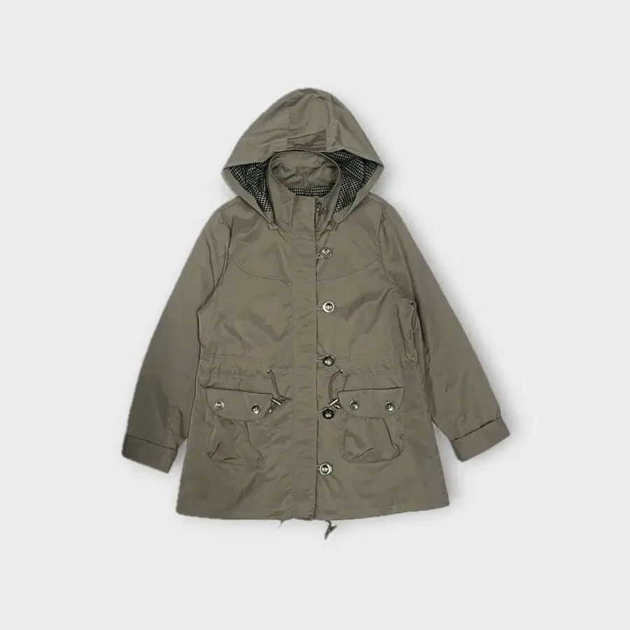 카키 후드 부착 모즈 코트