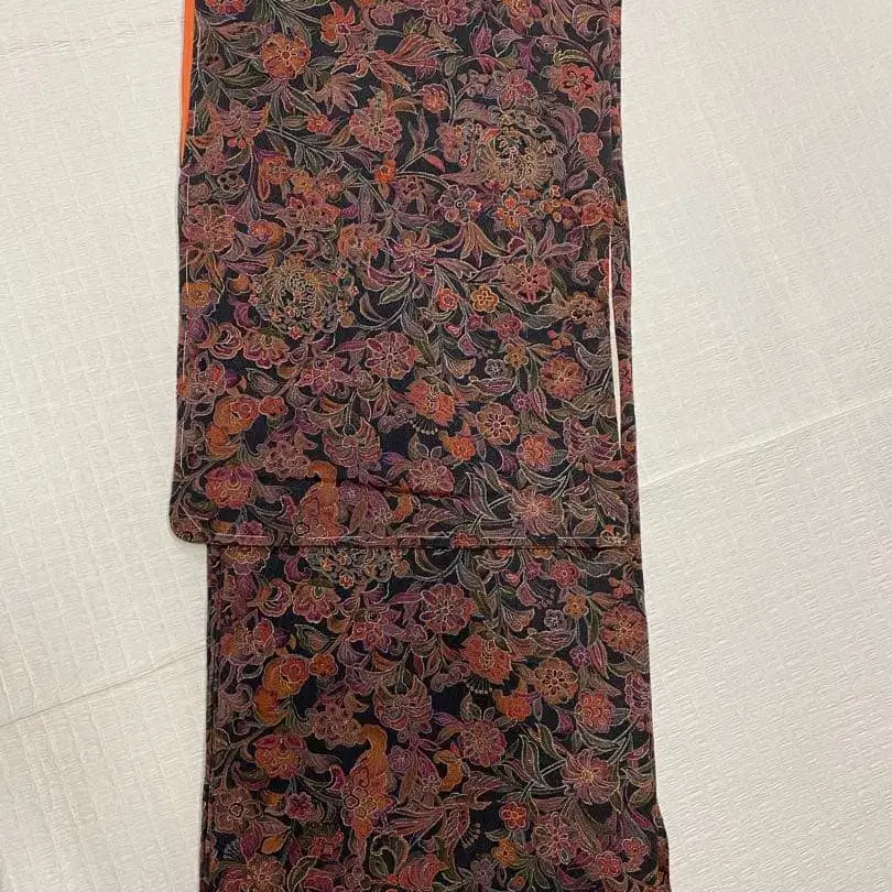 꽃무늬 코몬 기모노 블랙 베이스 오렌지 악센트 사라사 무늬