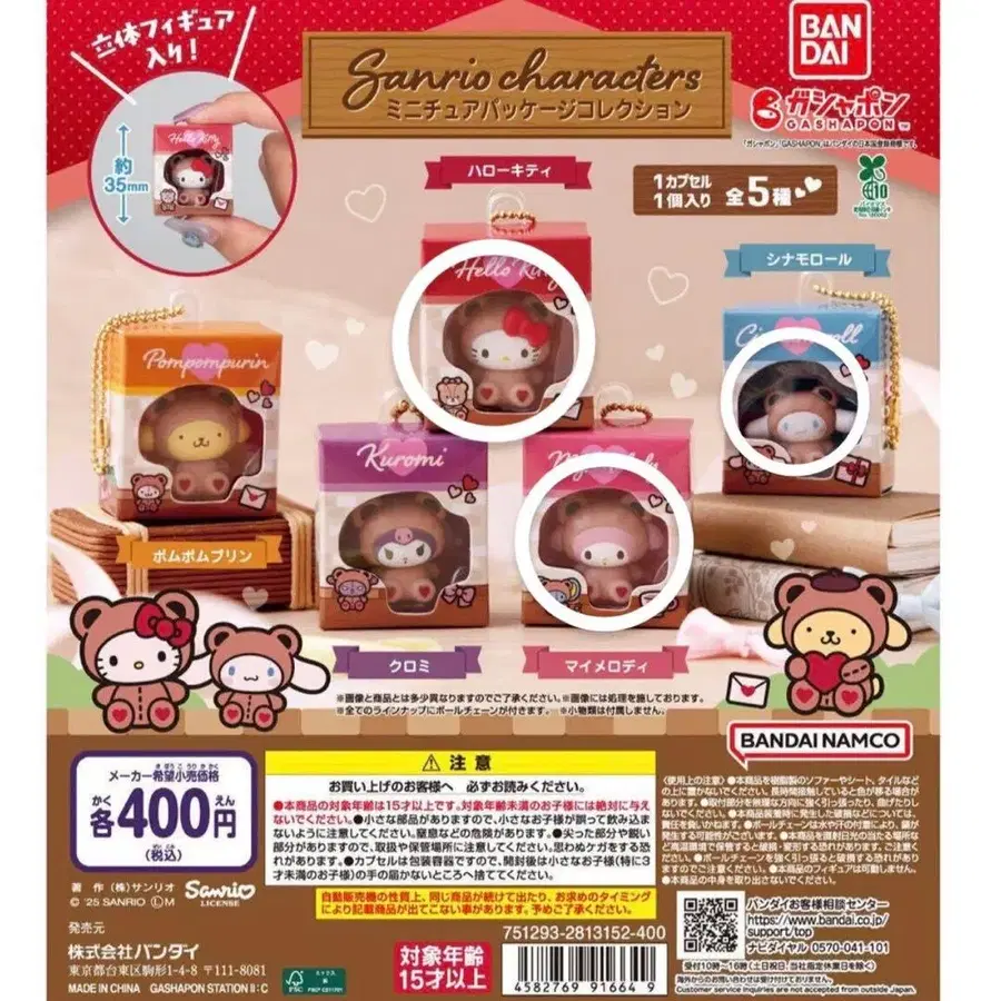 산리오 캐릭터 미니어처 패키지 참 키티 마이멜로디 시나몬
