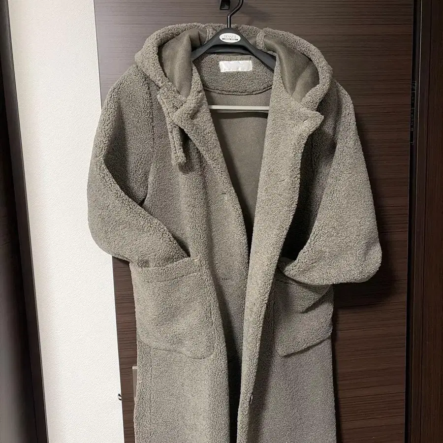 DoCLASSE 후드 부착 보아 롱 코트 그레이