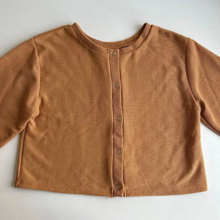 브라운 리브 편 긴팔 크롭 상의
