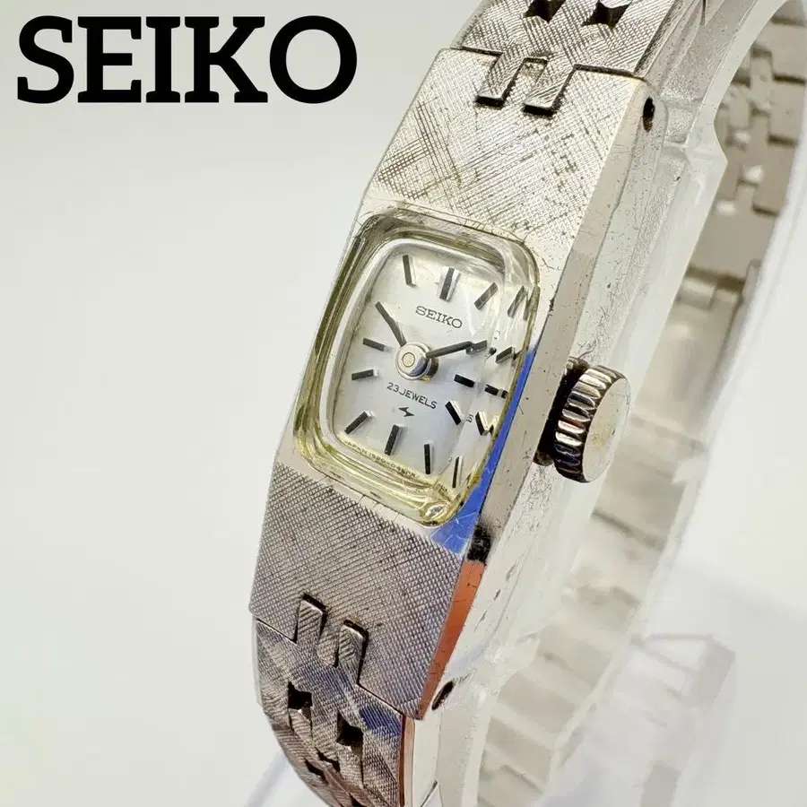가동 수동 와인딩 SEIKO 손목시계 여성용 실버 2침 23석 스퀘어