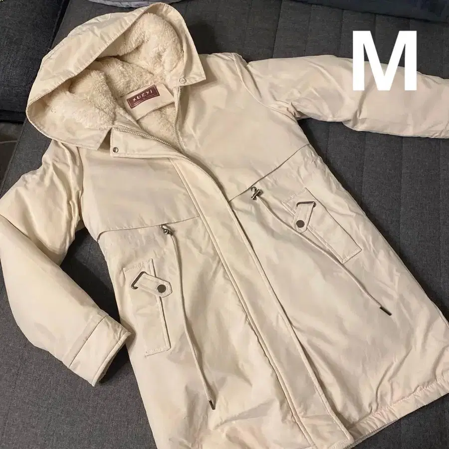 AUEYI 후드 부착 화이트 모즈 코트 복슬복슬 퍼 M K-스타일
