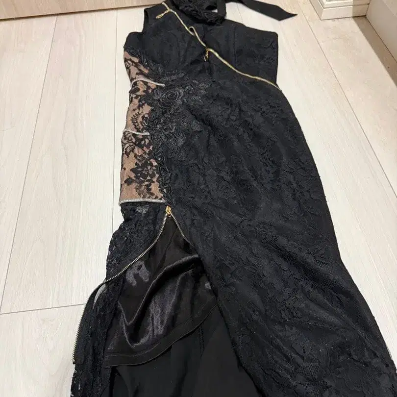 ROSE & FLARE 글로시 블랙 드레스 S 롱