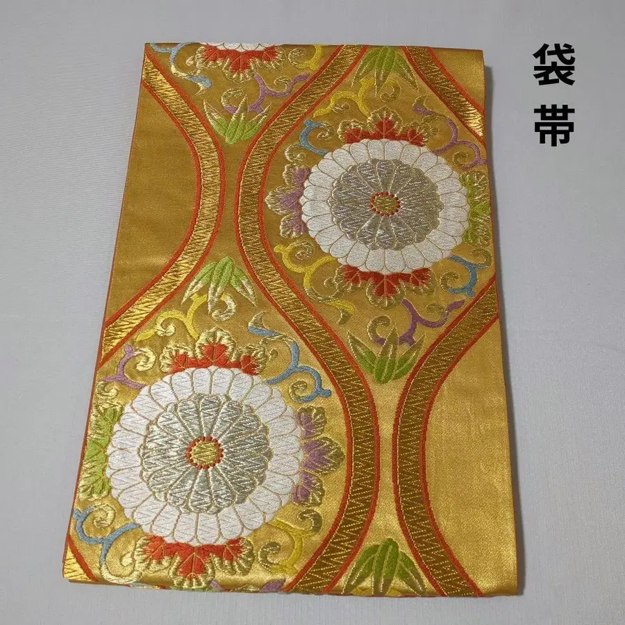 당오리 화려한 골드 컬러 꽃무늬 자수가 놓인 후쿠로 오비. - 색상: 골드 컬러 - 디자인: 타테와쿠 패턴 금사에 꽃무늬 자수 - 소재: 실크 - 자수 색상: 화이트, 빨간색, 그린, 보라색, 옐로우 컬러, 금 타테와쿠 문양은, 오비 모양의 선이 파도처럼 상하로 물결치는, 일본 고래의 전통적인 문양입니다. 그 아름다운 곡선은, 물이 솟아오르는 모습이나 피어오르는 구름 등을 표현하고 있다고 합니다. 나라 시대부터 존재했다고 하며, 근원을 거슬러 올라가면, 공가의 계급을 나타내는, 유직 문양으로서 중용되었습니다. 당시, 공가는 계급에 따라, 사용할 수 있는 복장의 색상과 패턴이 엄격하게 정해져 있던 시대였습니다. 현재는, 길운의 문양으로서, 기모노의 오비에 사용되고 있습니다. 포멀한 기모노에 꼭 사용해 주세요. 금사가 매우 화려한 당오리 오비는 하나쯤 가지고 싶은 것입니다. 방문해 주셔서 감사합니다. 질문이 있으시면, 부담 없이 댓글로 말씀해 주세요.