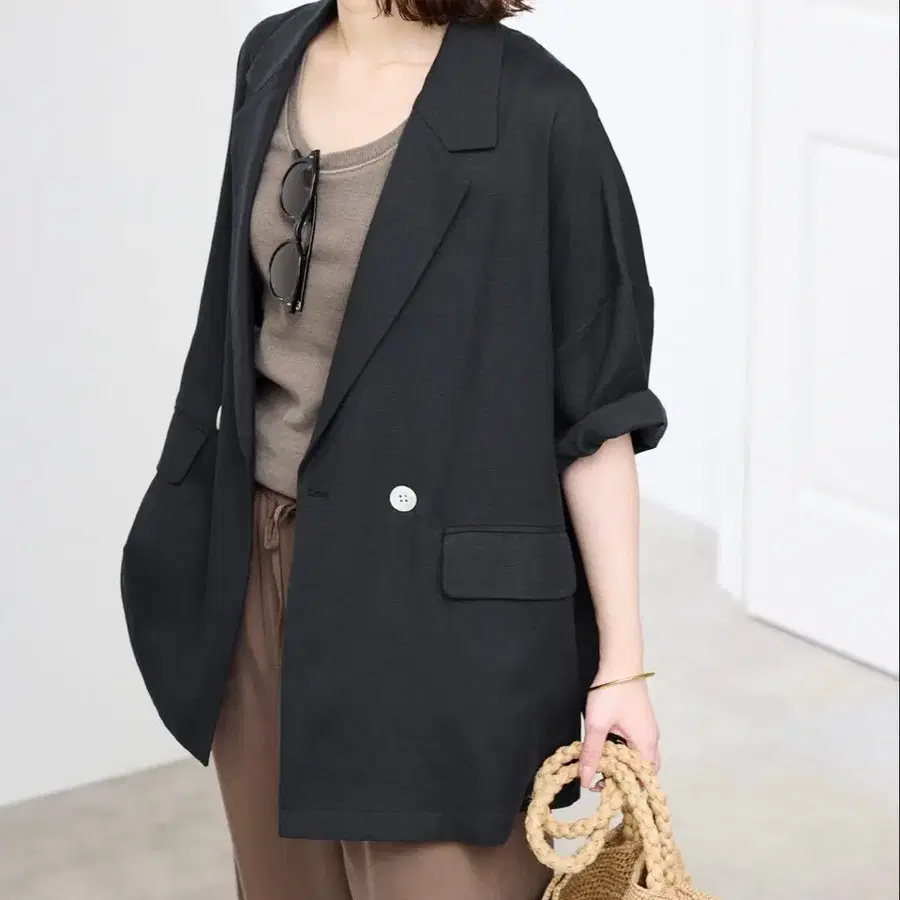 슬로브 이에나 린넨 레이온 하프 슬리브 자켓