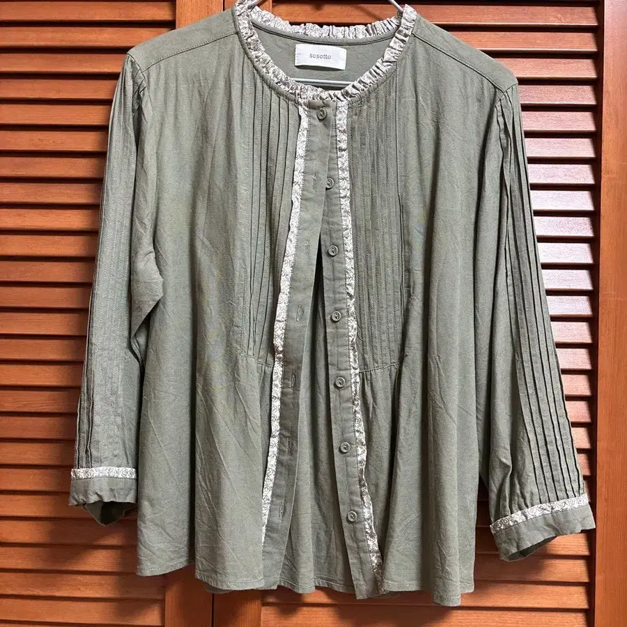 소소토 sosotto 올리브 그린 플리츠 셔츠