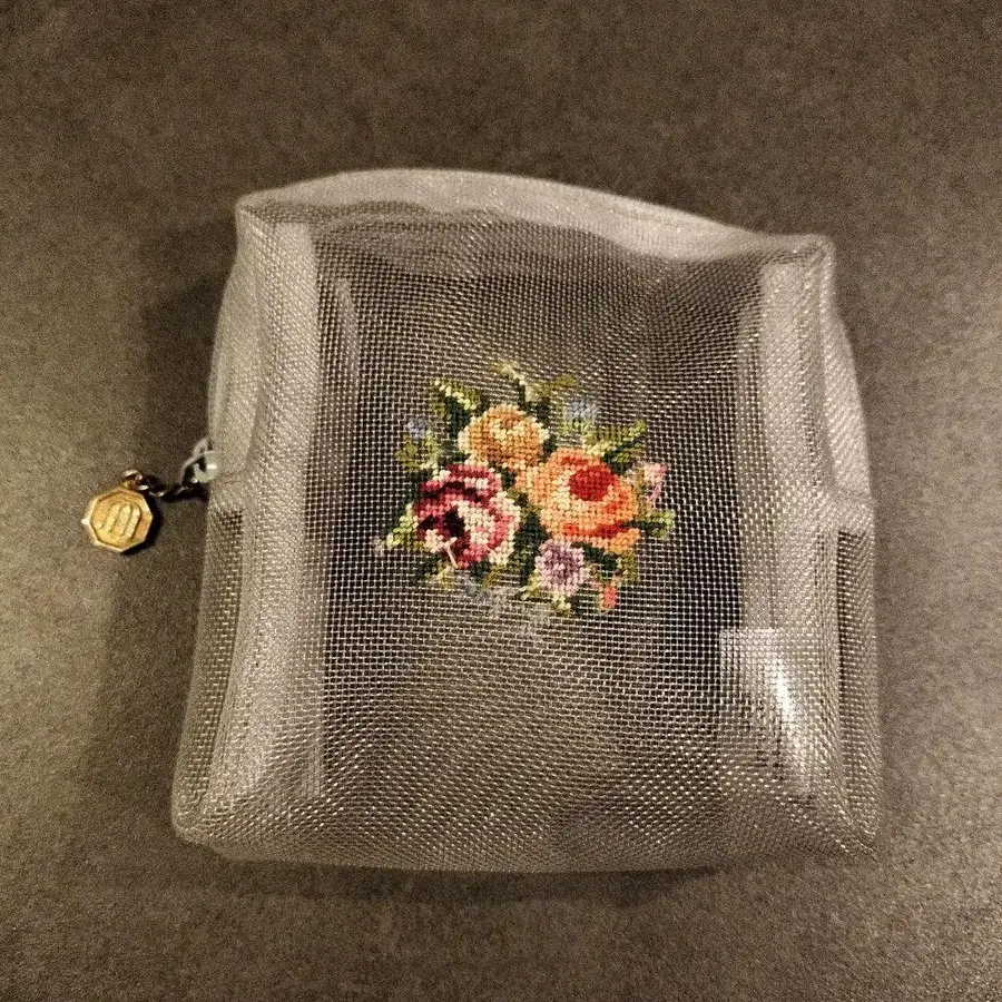 미치코 쿠게 자수 메쉬 파우치 그레이