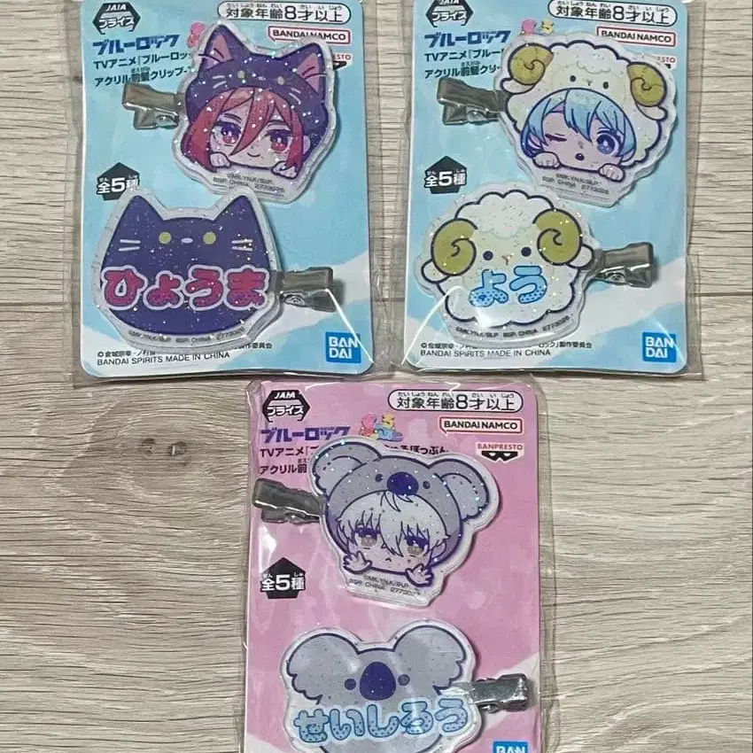 블루 록 큐루포푼 아크릴 앞머리 클립 애니멀 인형옷 3종 세트
