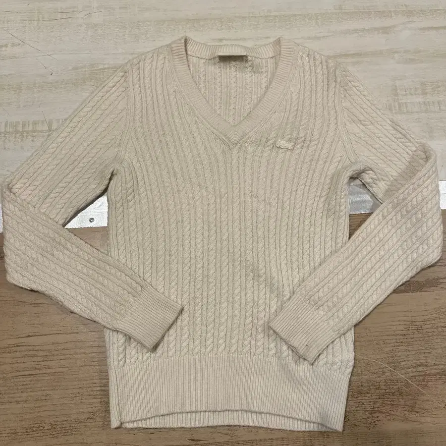 LACOSTE 라코스테 여성용 니트 스웨터 아이보리 V넥