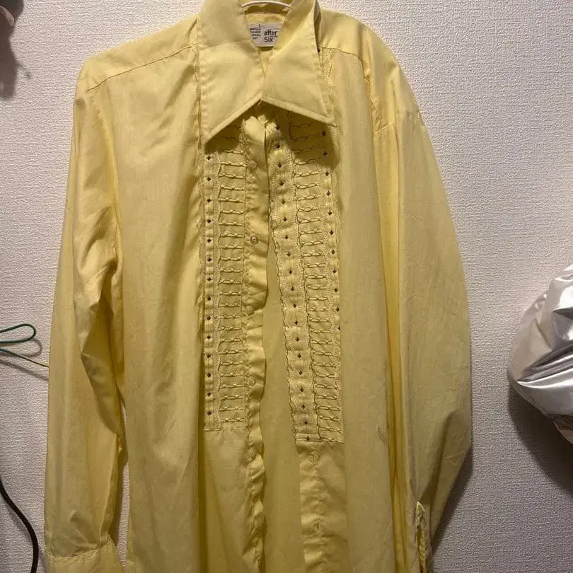 after six 프릴 달린 옐로우 컬러 긴팔 셔츠