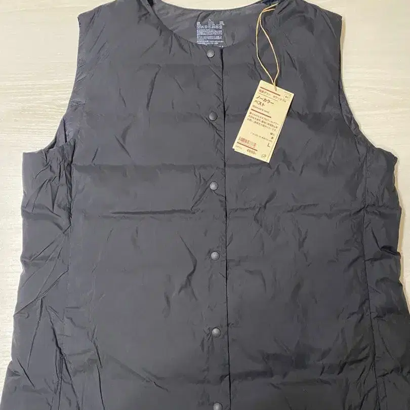 무인양품 경량 다운 L 사이즈 블랙 포켓터블 노카라 베스트