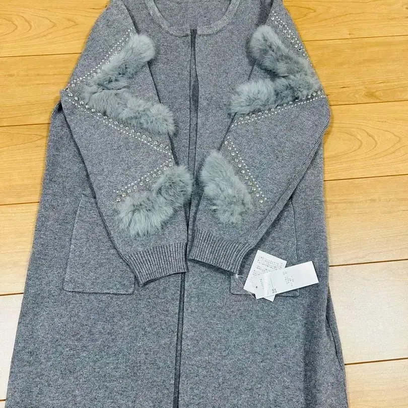 새상품 Piacere 스터드 x 퍼 롱 가디건 그레이 계열