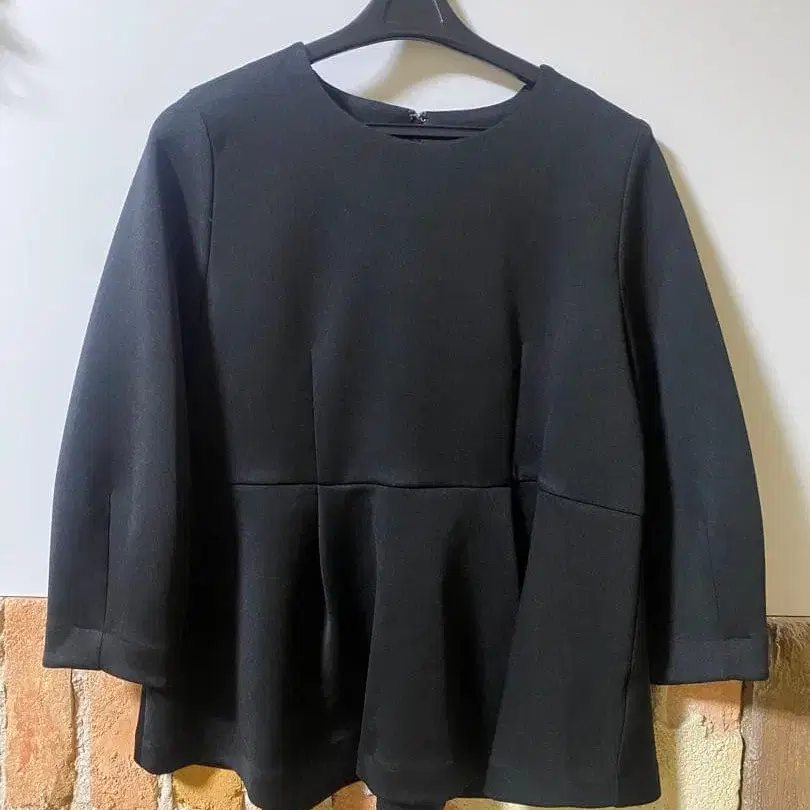 블랙 7부 소매 페플럼 튜닉