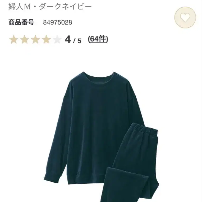 무인양품 코튼 벨로아 긴팔 룸웨어 세트