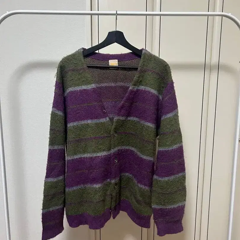 KODKY'N 보라색과 그린 스트라이프 가디건