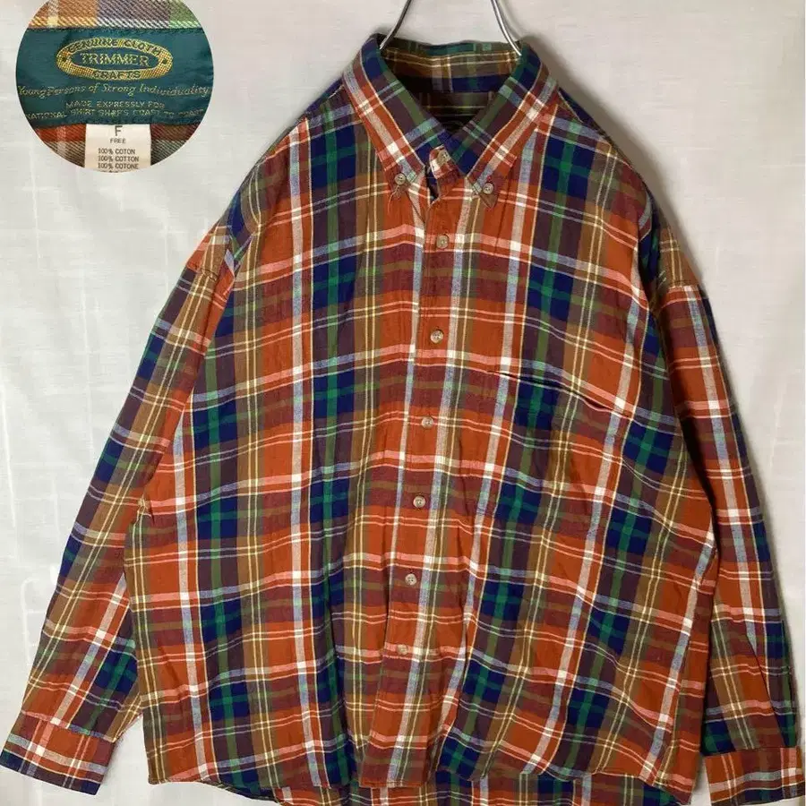 굿 디자인 구제 의류 오렌지 멀티 컬러 체크 코튼 셔츠 루즈한 사이즈
