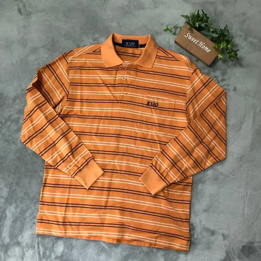 [ XXIO ] 오렌지 스트라이프 피케 셔츠 M