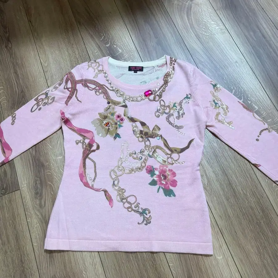 유키토리이 비쥬 부착 보석 패턴 긴팔 니트 사이즈 38
