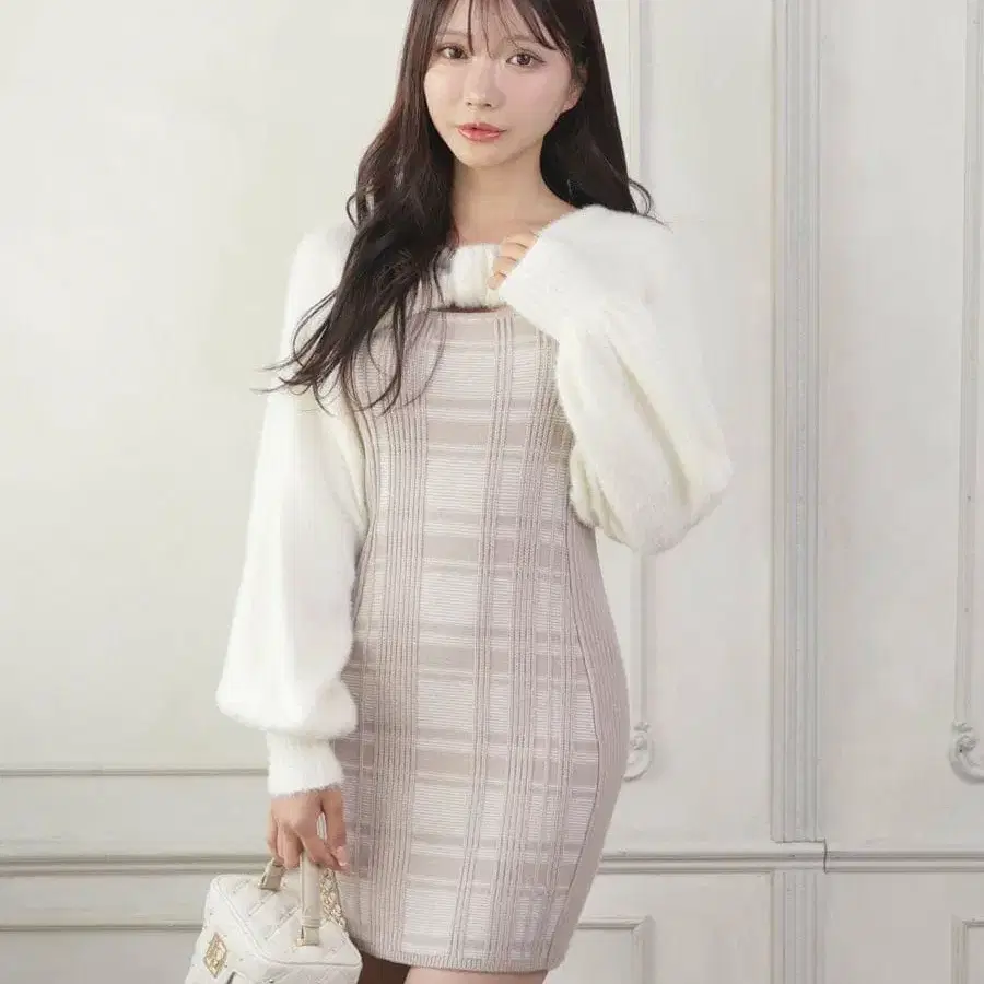 립 서비스 리본 페더 앙상블 니트 원피스 [ 새상품급 ]