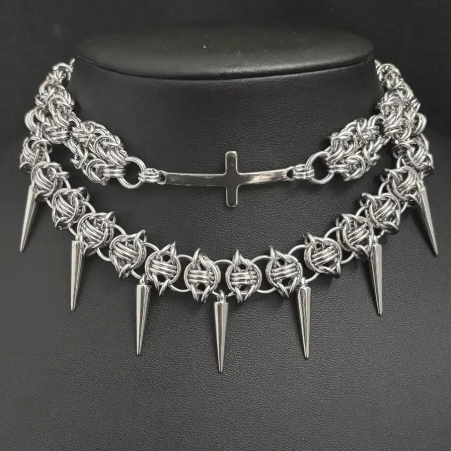 모든 작품은 하나하나 수작업으로 제작됩니다. 보내드릴 때는 정성껏 포장하여 신속하게 발송해 드립니다. — [ 상품 상세 정보 ] 목둘레 : 31~34cm 소재 : 스테인리스 스틸 [ 사이즈 변경 ] 목둘레를 원하는 길이로 변경할 수 있습니다. 변경을 원하시는 분은 구매 전에 댓글로 길이를 적어주세요. [ 소재 ] 소재는 주로 스테인리스로 만들어져 금속 알레르기가 있는 분들도 비교적 안심하고 착용할 수 있습니다. 또한, 스테인리스는 녹 방지 기능이 있어 오래 사용할 수 있을 것입니다. — 체인메일 (Chainmail)이란, 금속으로 된 작은 고리(오링)를 조합하여 체인처럼 짜는 기법, 또는 그 기법으로 만들어진 액세서리를 말합니다. 현대에는 독특한 질감과 디자인성으로 인해 주얼리로 자리 잡았으며, 많은 브랜드에서 활용되고 있습니다. #eLnecklace ← 다른 목걸이는 이쪽에서 확인하세요. chainmail y2k punk grunge rosary archive goth opium 스트릿 모드 V系