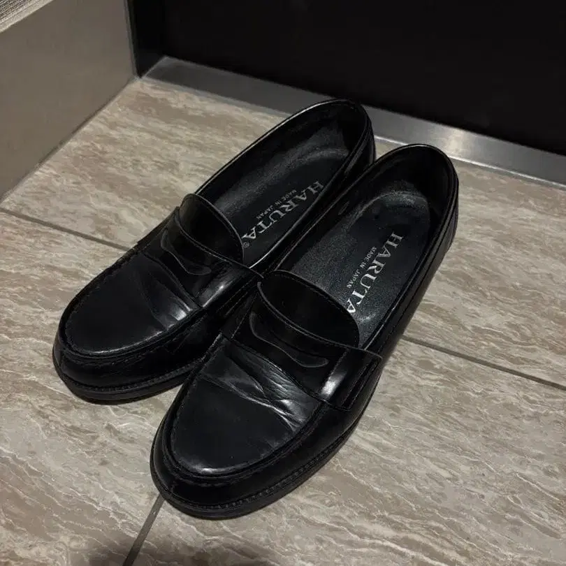 HARUTA 블랙 천연 가죽 로퍼 중간 힐