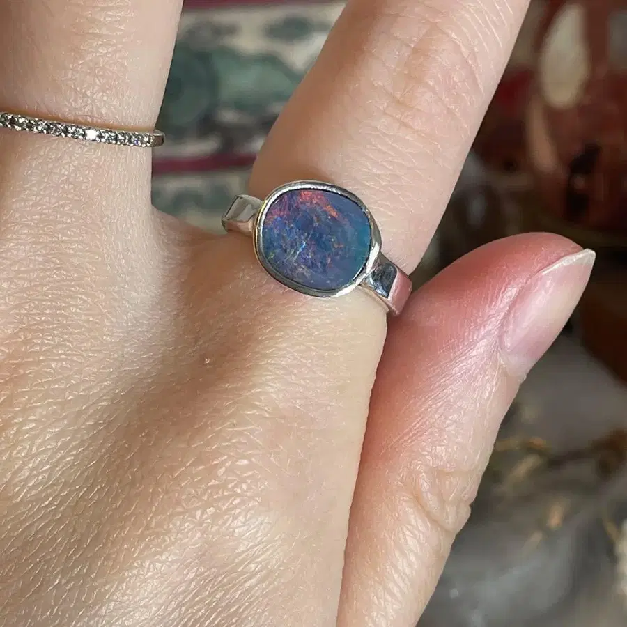 핸드메이드 실버 925 실버 반지 더블렛 볼더 오팔