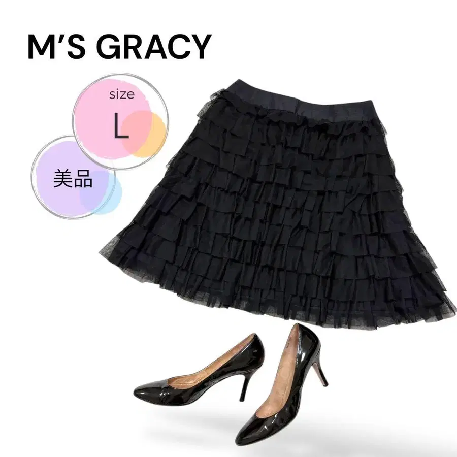 컨디션 최상 엠즈 그레이시 티어드 프릴 스커트 튤 L 사이즈 40 블랙