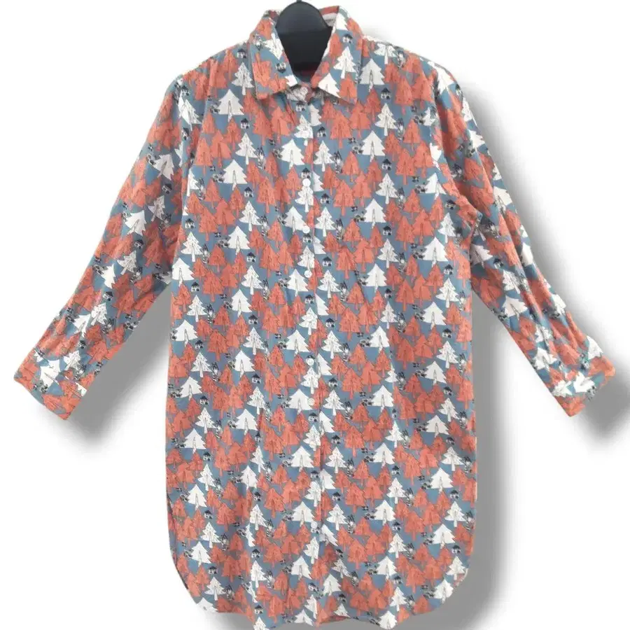 북유럽 스타일의 트리 패턴이 전체적으로 시공된 개성 넘치는 롱 셔츠입니다 ☆