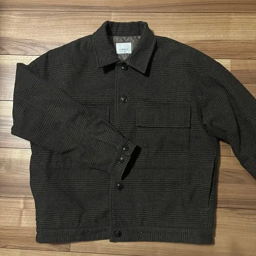 JUNRED 다크 브라운 체크 자켓