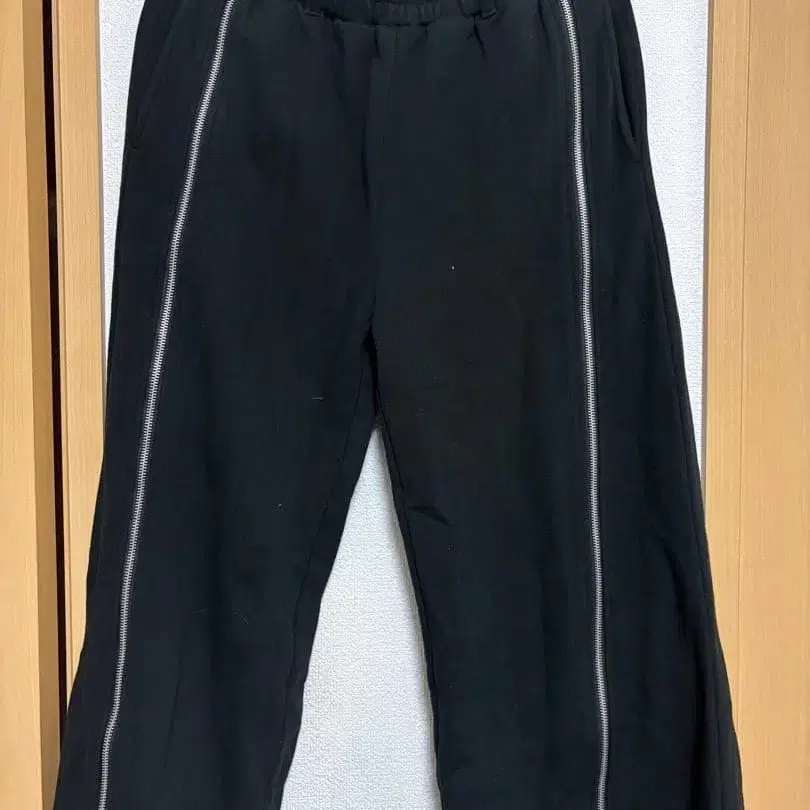 ELLUV 블랙 지퍼 플레어 스웨트 팬츠