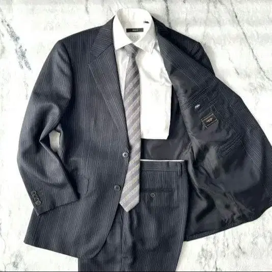새상품급 고급 원단 도멜 x 새빌로우 셋업 수트 울 총 안감 블랙