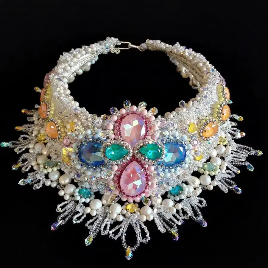 모두 스와로브스키를 사용한 핸드메이드 코스튬 주얼리 목걸이입니다. 핸드메이드 작가에게 양도받아 집에서 장식하고 있었으나, 이사하게 되어 판매합니다. 저는 지식이 없으므로 사이즈 수정 등은 할 수 없습니다. 현재 상태 그대로, 목걸이만 전달합니다. (마네킹, 의류는 포함되지 않습니다.) 컴플레인, 노 리턴으로 부탁드립니다. 모두 스와로브스키 크리스탈을 사용했기 때문에 화려한 장소에서 착용하거나, 미술품으로 장식하거나, 분해하여 작품 부품으로 사용할 수 있다고 생각합니다. 목둘레 사이즈 약 45cm 핸드메이드 클로징과 레이스 리본으로 착용 무게 약 800그램 스와로브스키 크리스탈 스와로브스키 펄 연속 체인 기타 크리스탈 비즈, 펄 사용 [ 발송에 대해 ] 완충재로 감싸, 클리어 박스, 종이상자에 넣어 발송합니다. 리사이클 자재를 사용할 수 있습니다. 랩핑, 선물 포장은 불가능합니다. 배송비 부담하므로, 할인은 삼가 주시기 바랍니다. 외출할 기회가 적어, 발송까지 4일 정도 시간이 걸립니다. 이해해 주시는 분과 거래하기를 희망합니다. 잘 부탁드립니다. 다른 코스튬 주얼리도 판매 중입니다. 프로필에서 확인해 주세요. #코스튬주얼리 #스와로브스키크리스탈 #스와로브스키 #목걸이 #파티 #장식품 #리사이틀 #콘서트 #연극 #미술품 #리본 #드레스 #하이주얼리 #아트주얼리